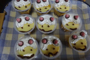 2月3日 節分の鬼の顔に飾り付けたプリンを手作りさせていただきました。皆様大変喜んでくださり「美味しい」とたくさんの笑顔…